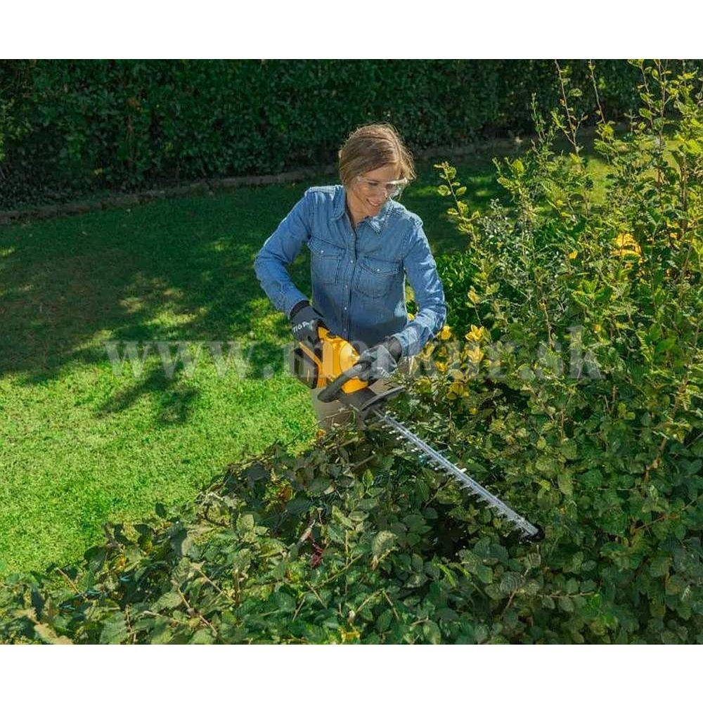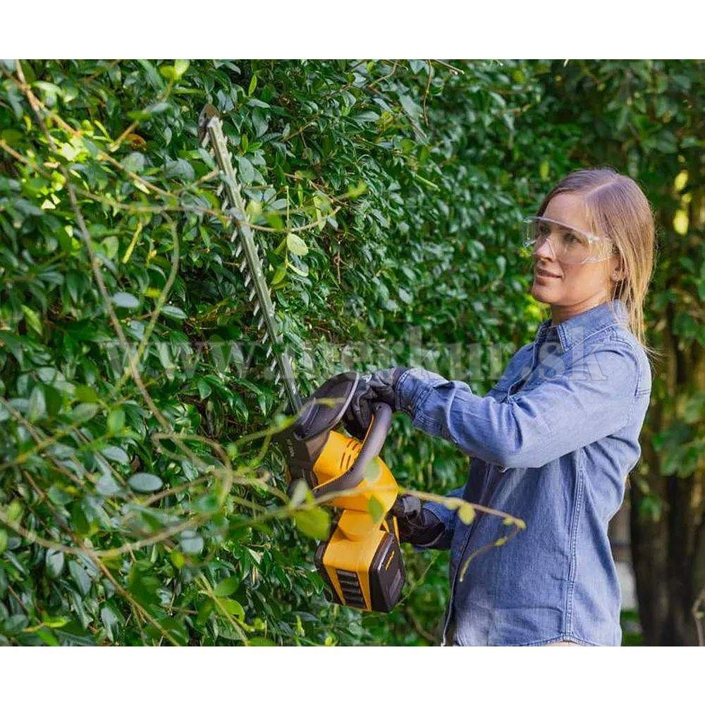 Bez káblov, ktoré by vám prekážali si 54cm laserom brúsená čepel z tvrdenej ocele efektívne poradí s presným zastrihovaním živých plotov a kríkov.