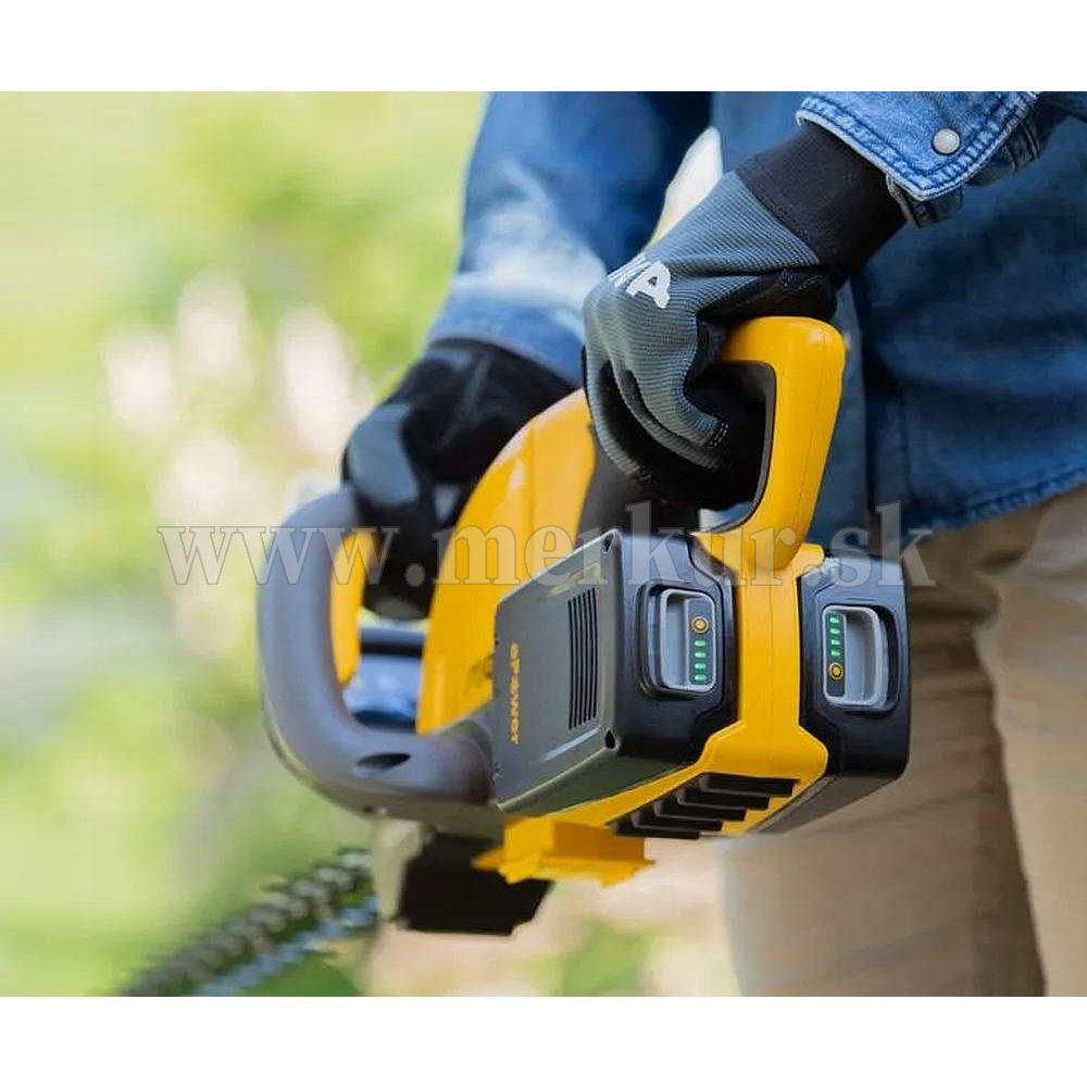 Vďaka batériám 2x20V ePower poskytuje potrebný výkon pre bezchybné zastrihovanie živých plotov.
