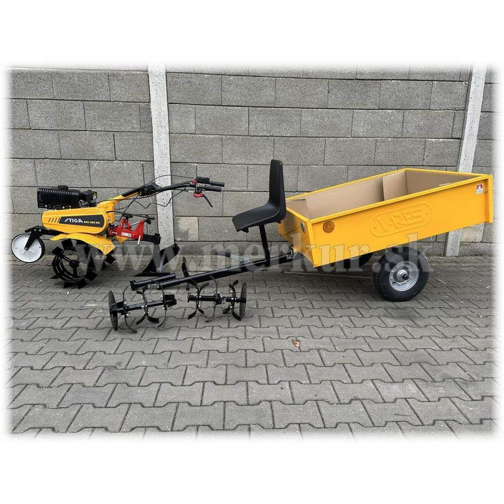 SET obsahuje: rotavátor, kolesá gumové a kovové, hrobkovaciu radlicu, vozík a pluh. V základe je iba jeden motor.