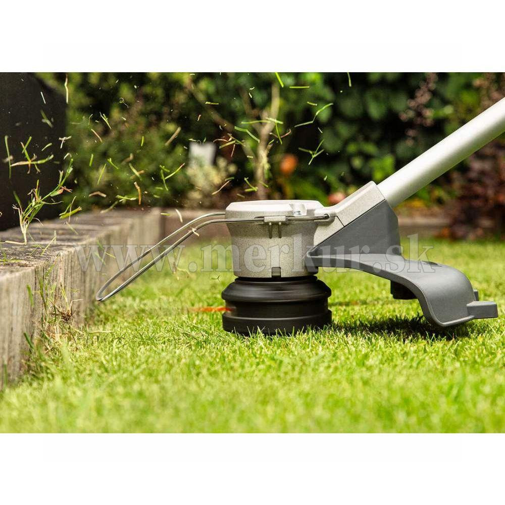 Nylonové žacie lanko sa okamžite nahradí nárazom podávacej hlavy, ktorá zaisťuje nepretržité kosenie bez zníženia kvality kosenia.