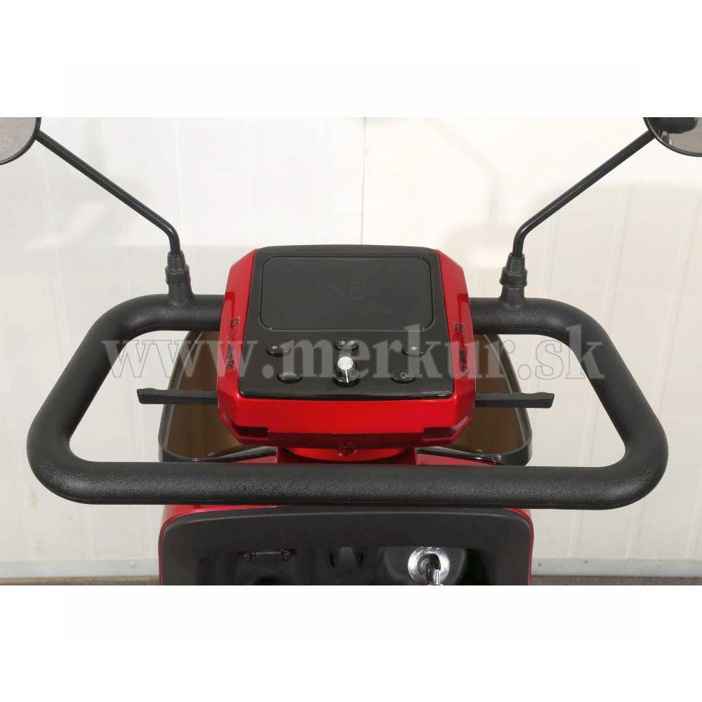 Tento invalidný elektrovozík je prispôsobený pre potreby osôb so zhoršeným zdravotným stavom. Pomocou páčok na riadidlách veľmi jednoducho volíte rýchlosť pojazdu, ďalej máte možnosť max. rýchlosť obmedziť kolieskom (potenciometrom). Tento model umožňuje dokúpenie radu rôzneho príslušenstva ako je predný košík, zadný box alebo zadný skladací kôš. K dispozícii sú aj oceľové nárazníky, ktoré veľmi odporúčame na ochranu plastov. Prípadne sa môže hodiť aj držiak francúzskych palíc a krycia plachta. Polohovateľné sedadlo tvorí pohodlnú oporu celého chrbta. Lakťové opierky po oboch stranách pomáhajú ešte vyššiemu komfortu.
