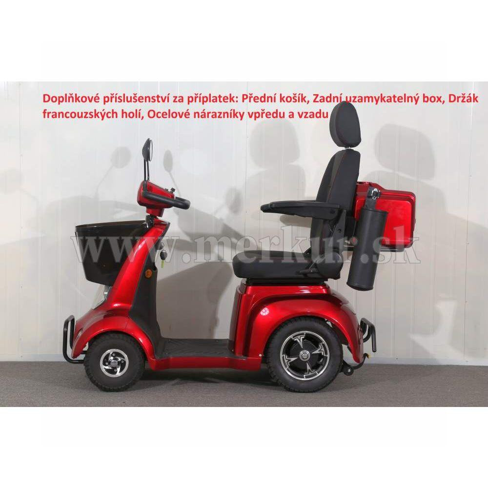 Doplnkové príslušenstvo je za príplatok: Predný košík, zadný uzamykatelný box, držiak barlí, ocelové nárazníky v predu a v zadu, zadný skladací košík.