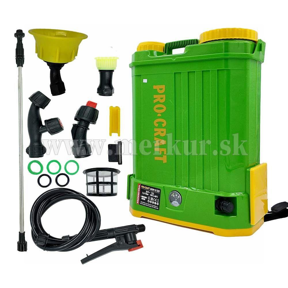 Aku postrekovač Procraft AS20-12 je určený na postrek, rozprašovanie prípravkov a prostriedkov, ošetrovanie rastlín a stromov, ničenie škodcov a buriny, dezinfekciu a čistenie priestorov. Po vyprázdnení nádoby dôjde k automatickému vypnutiu. Spoľahlivé čerpadlo s nastaviteľným prietokom a tlakom až 5 bar as integrovaným kontrolným barometrom. Postrekovač má teleskopickú kovovú trubicu a je vyrobený z kvalitných materiálov, ktoré pod tlakom nepraskajú. Je vybavený gumovým tesnením, ktoré má väčšiu odolnosť ako štandardne dodávané silikónové tesnenie. V balení sú náhradné vymeniteľné trysky, trysky na rôzny rozstrek, praktický chrbtový popruh, tesniace krúžky a komfortné spúšťacie pištole. Nádoba postrekovača je priesvitná, takže pri práci vidíte objem kvapaliny.