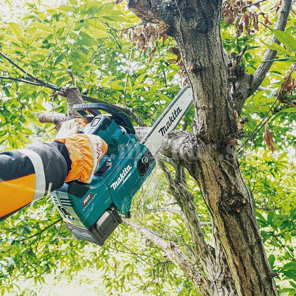 Akumulátorová reťazová píla UC003G je poháňaná 40 V batériou Max XGT®, vybavená lištou s dĺžkou 30 cm, s výkonom podobným benzínovej reťazovej píle s motorom 30 cm3.
