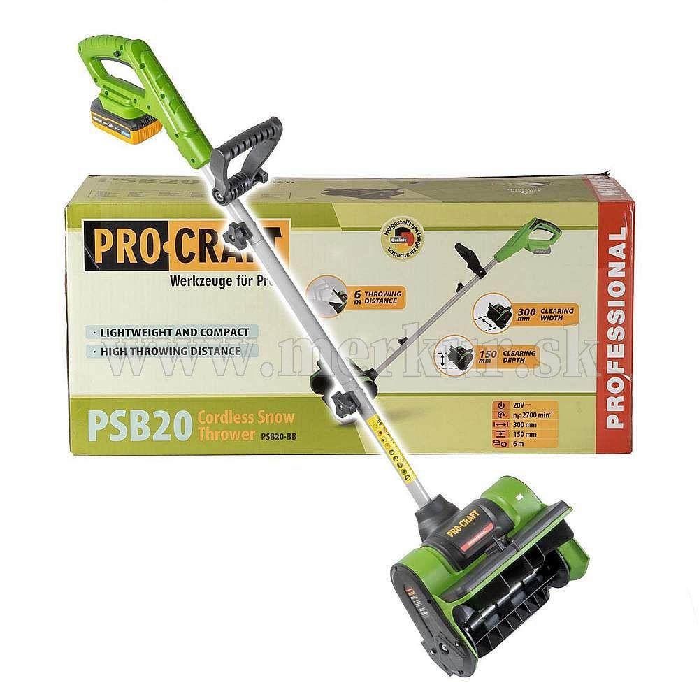 Aku snehová fréza Procraft PSB20bb s bezuhlíkovým motorom je kompaktný a efektívny stroj na odpratávanie snehu z menších plôch, ako sú chodníky, príjazdové cesty alebo terasy a schody.