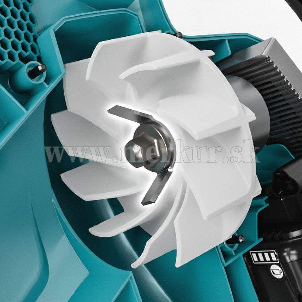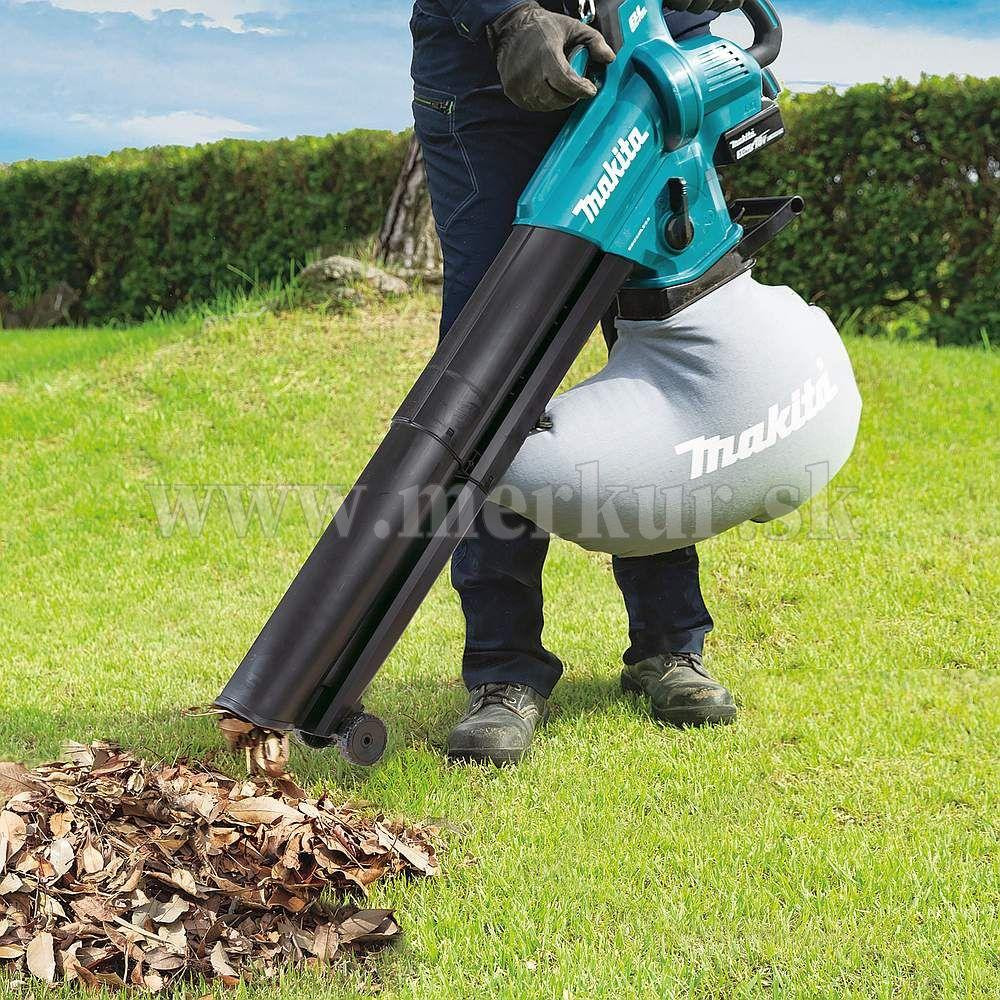 Integrované obežné koleso drví lístie nasávané vysávačom počas vysávania, čím výrazne znižuje ich objem. Zároveň drvenie podporuje prirodzený rozklad lístia. Akumulátorový fúkač a vysávač na lístie je vybavený citlivou pákou plynu. To umožňuje variabilné nastavenie otáčok pre maximalizáciu životnosti batérie. Pre nepretržité používanie je k dispozícii uzamykateľný režim nepretržitej prevádzky.