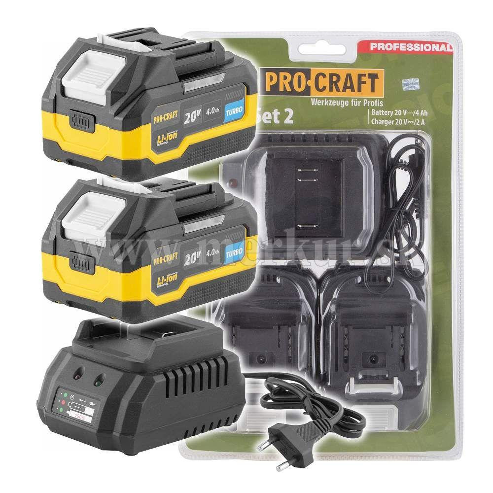 Sada obsahuje 2x batérie Procraft 20V - 4Ah s ochranou proti prehriatiu a vybitiu a 1x nabíjačku. Ideálny doplnok pre neprerušovanú prácu s akumulátorovým náradím Procraft.