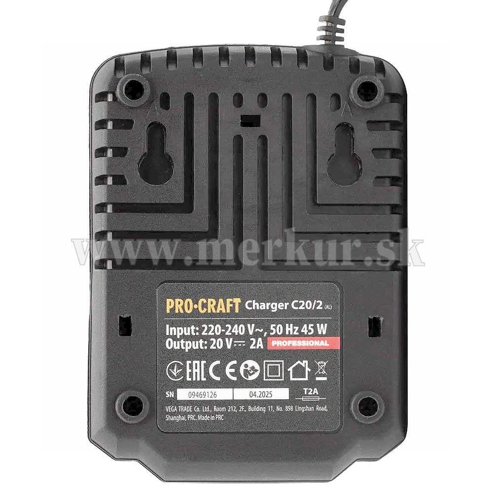 Nabíjačka pre 20V Li-ion batérie Procraft 20/2