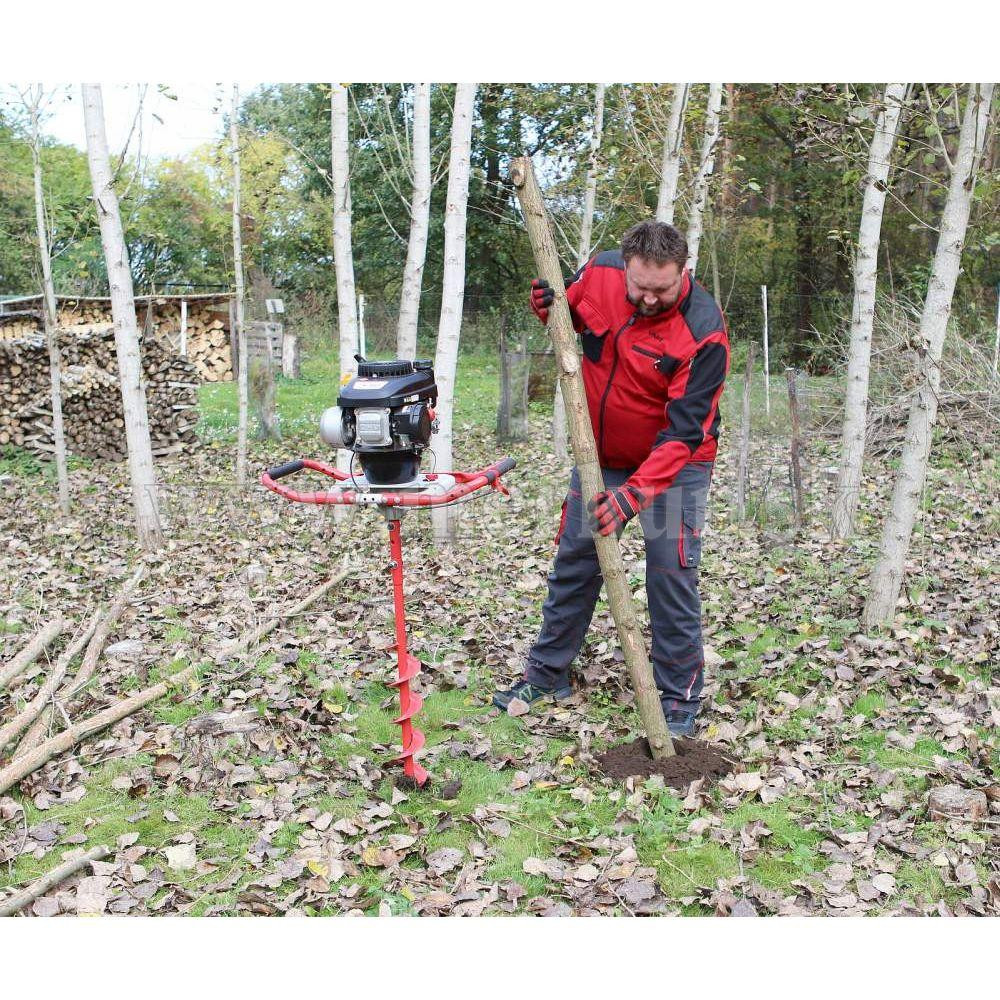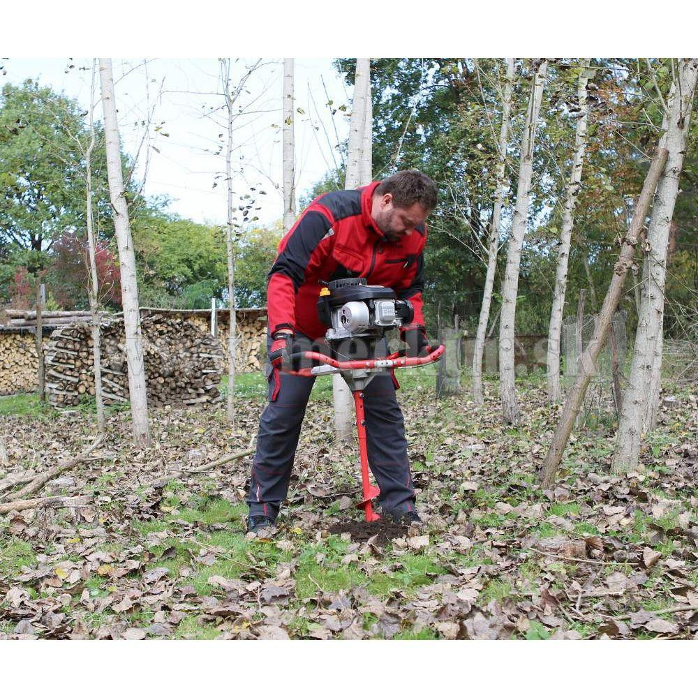 Súčasťou balenia sú štyri výmenné vrtáky s priemermi 80, 100, 150 a 250 mm, čo umožňuje prispôsobiť sa rôznym pracovným podmienkam. Jednomužné ovládanie a ergonomická konštrukcia zabezpečujú pohodlnú manipuláciu aj pri dlhšej práci.