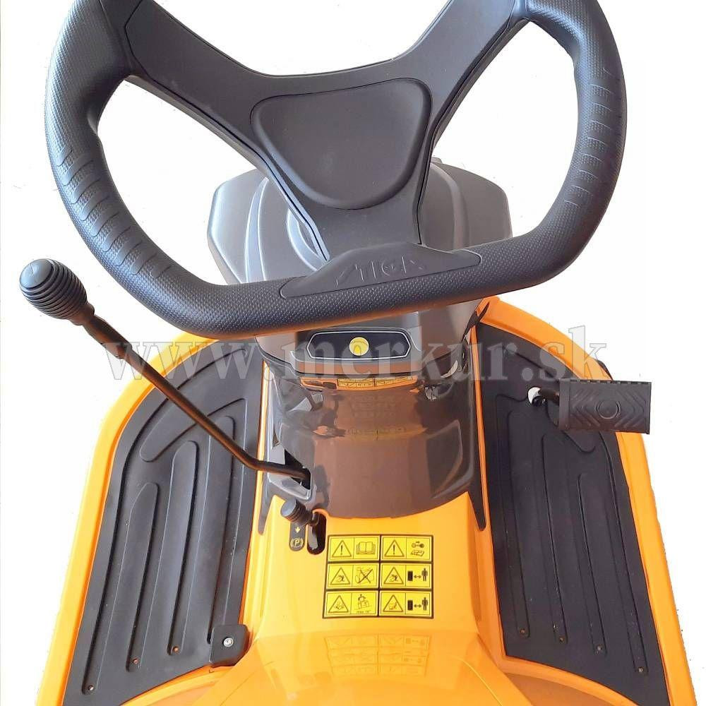 Tento model disponuje systémom reverzného kosenia, čo umožňuje kosiť aj pri jazde vzad. Žacie ústrojenstvo s jedným nožom ponúka 7 rôznych polôh výšky kosenia (30 – 80 mm) nastaviteľných manuálnou pákou. Traktor je vybavený textilným zberným košom s kapacitou 170 litrov a manuálnym vyprázdňovaním. Pre uľahčenie údržby nechýba umývacia prípojka na čistenie žacieho priestoru. O pohodlie sa stará nový volant STIGA new comfort, sedadlo s bezpečnostným vypínačom a prístrojová doska s LED kontrolkami. Predná náprava je otočná, čo zaisťuje stabilitu na nerovnom povrchu.