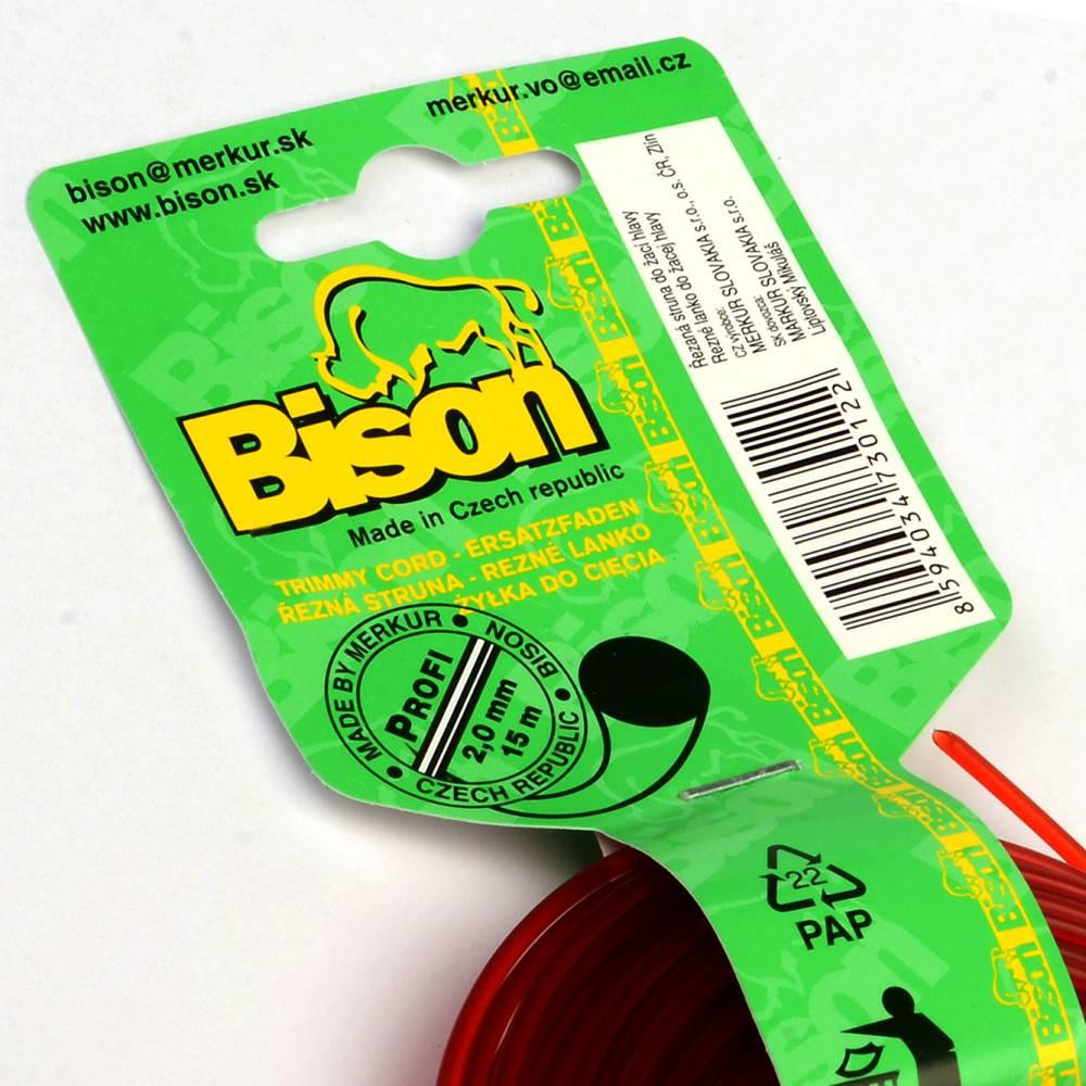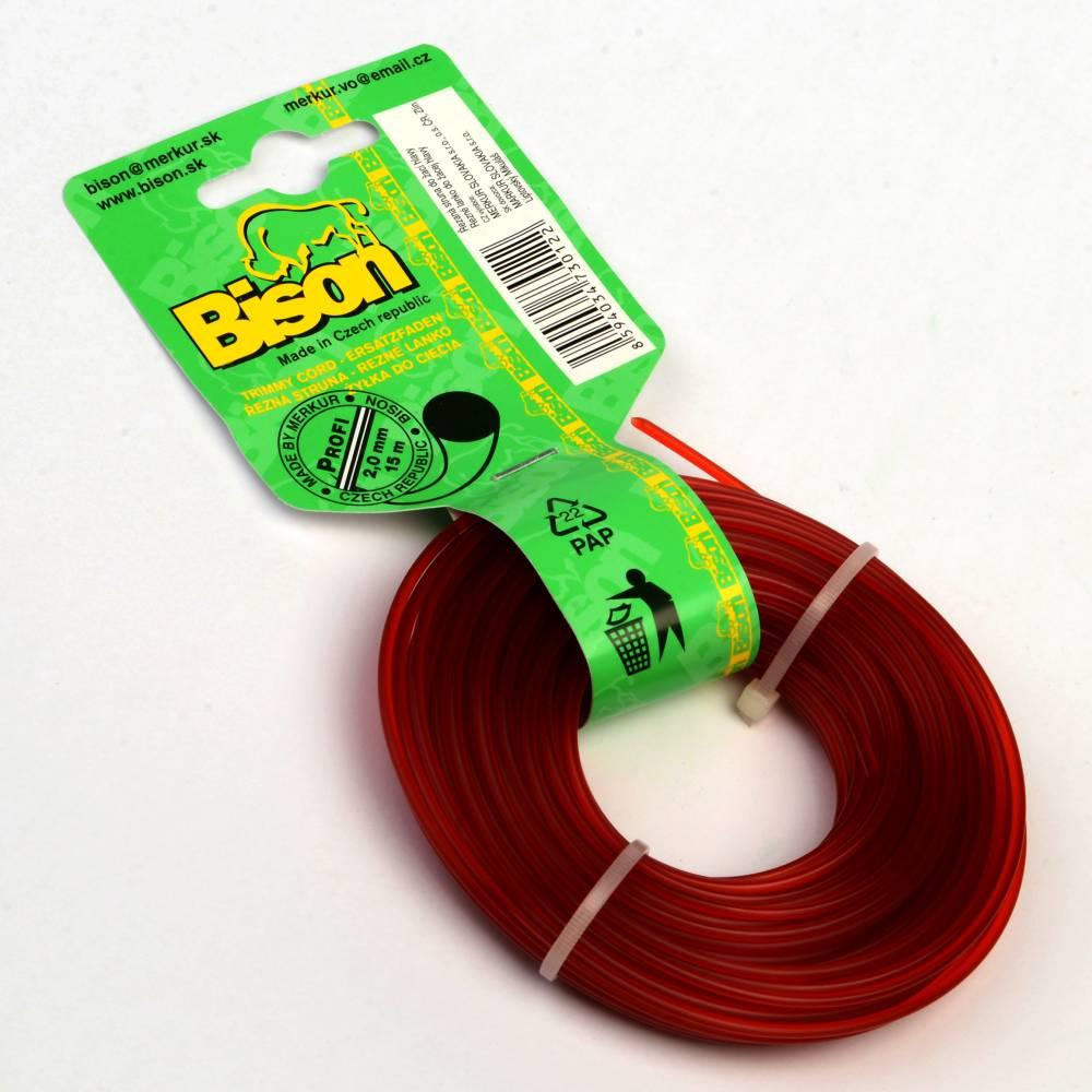 BISON PROFI je vysokokvalitné profesionálne žacie lanko kruhového prierezu červenej farby vyrobené zo zušľachteného kopolyamidu 6/12, materiálu s trvanlivosťou vysoko prevyšujúcou predávané silónové a štandardné nylonové lanká na našom trhu.