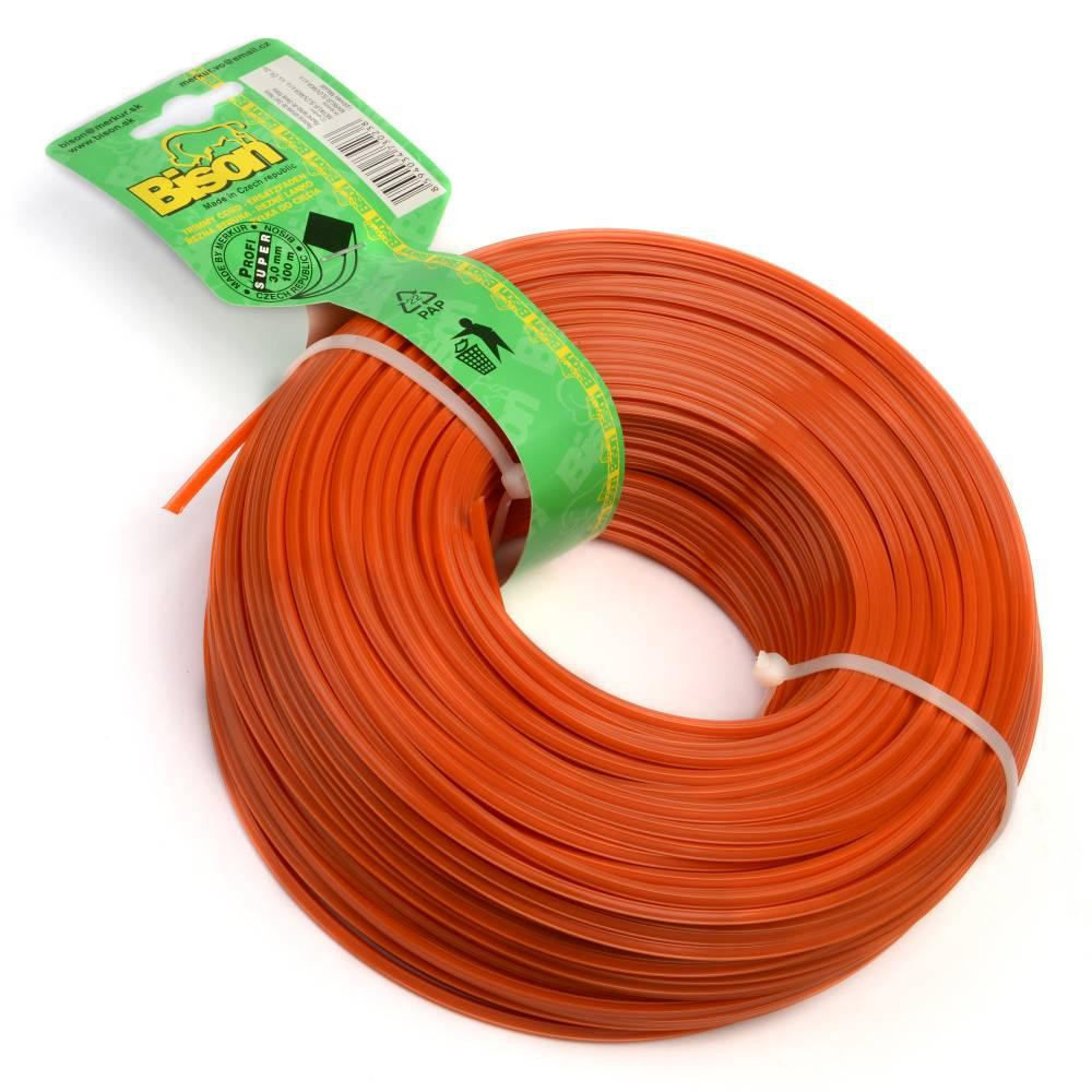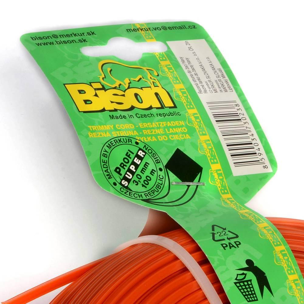 BISON SUPER PROFI je vysokokvalitné profesionálne žacie lanko štvorcového prierezu oranžovej farby vyrobené zo zušľachteného kopolyamidu 6/12, materiálu s trvanlivosťou vysoko prevyšujúcou predávané silónové a štandardné nylonové lanká na našom trhu.