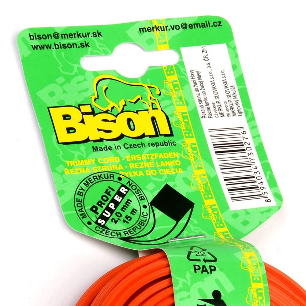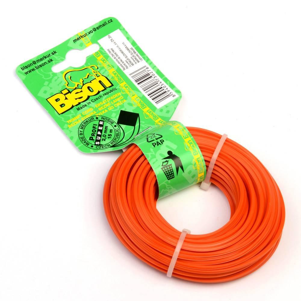 BISON SUPER PROFI je vysokokvalitné profesionálne žacie lanko štvorcového prierezu oranžovej farby vyrobené zo zušľachteného kopolyamidu 6/12, materiálu s trvanlivosťou vysoko prevyšujúcou predávané silónové a štandardné nylonové lanká na našom trhu.