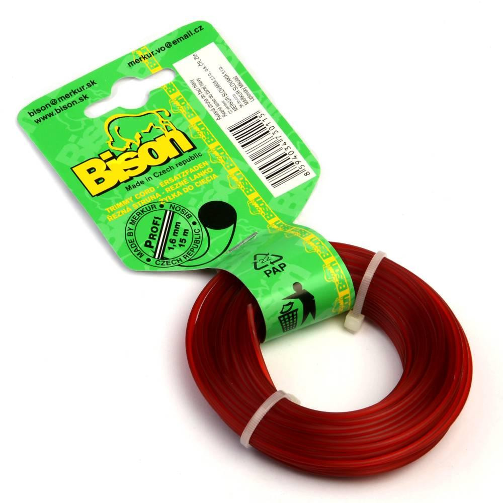 BISON PROFI je vysokokvalitné profesionálne žacie lanko kruhového prierezu červenej farby vyrobené zo zušľachteného kopolyamidu 6/12, materiálu s trvanlivosťou vysoko prevyšujúcou predávané silónové a štandardné nylonové lanká na našom trhu.