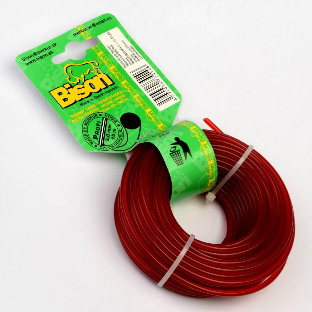 BISON PROFI je vysokokvalitné profesionálne žacie lanko kruhového prierezu červenej farby vyrobené zo zušľachteného kopolyamidu 6/12, materiálu s trvanlivosťou vysoko prevyšujúcou predávané silónové a štandardné nylonové lanká na našom trhu.