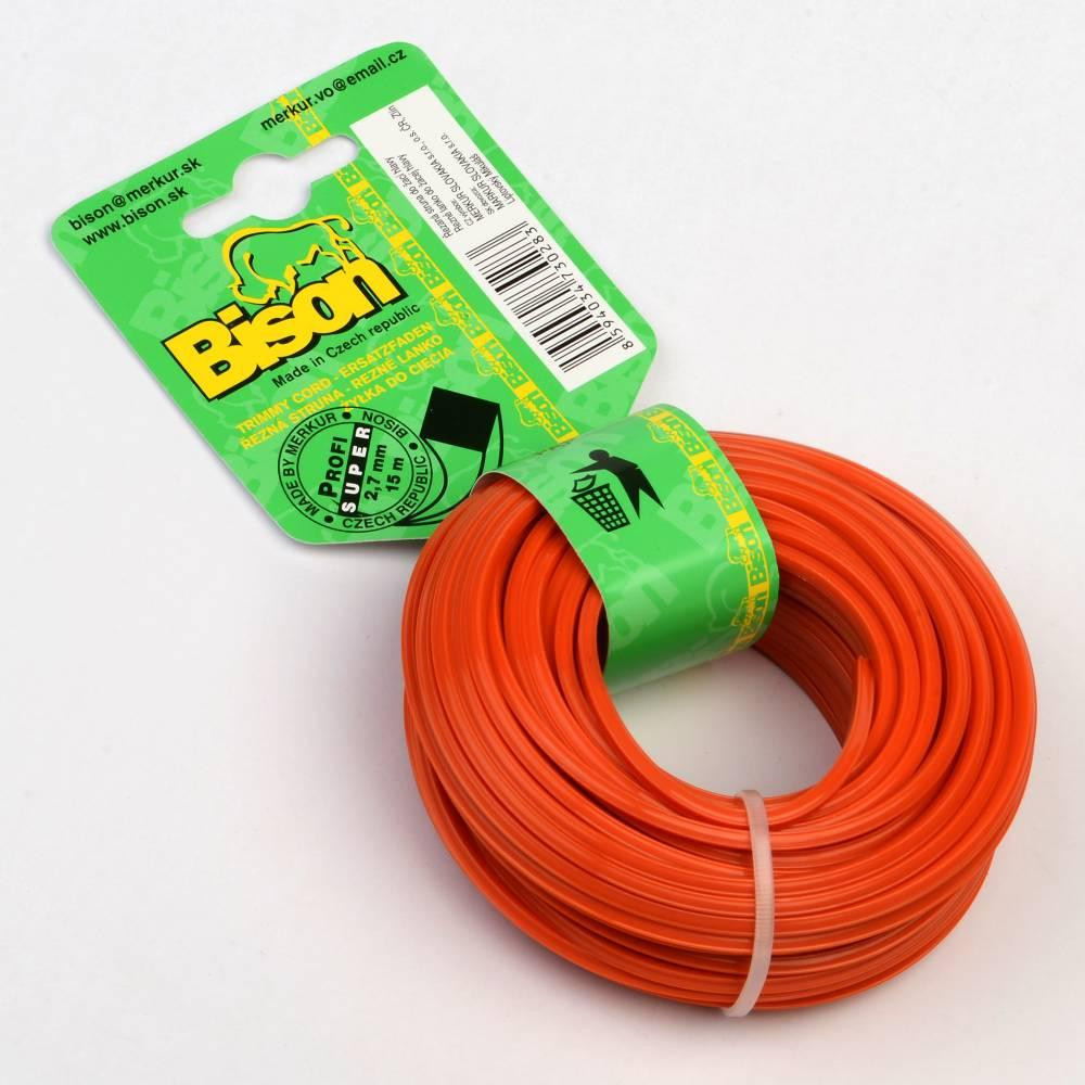 BISON SUPER PROFI je vysokokvalitné profesionálne žacie lanko štvorcového prierezu oranžovej farby vyrobené zo zušľachteného kopolyamidu 6/12, materiálu s trvanlivosťou vysoko prevyšujúcou predávané silónové a štandardné nylonové lanká na našom trhu.