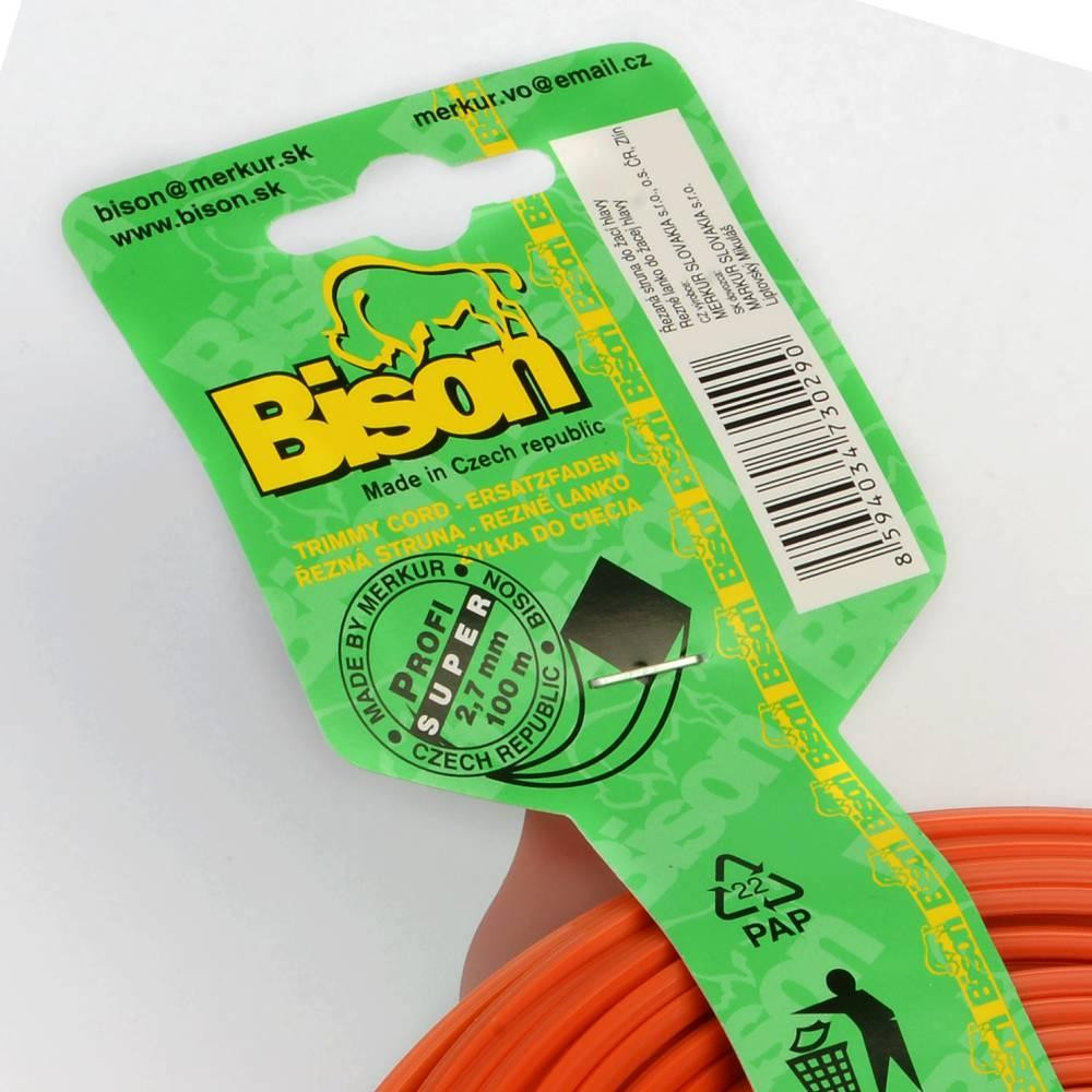 BISON SUPER PROFI je vysokokvalitné profesionálne žacie lanko štvorcového prierezu oranžovej farby vyrobené zo zušľachteného kopolyamidu 6/12, materiálu s trvanlivosťou vysoko prevyšujúcou predávané silónové a štandardné nylonové lanká na našom trhu.