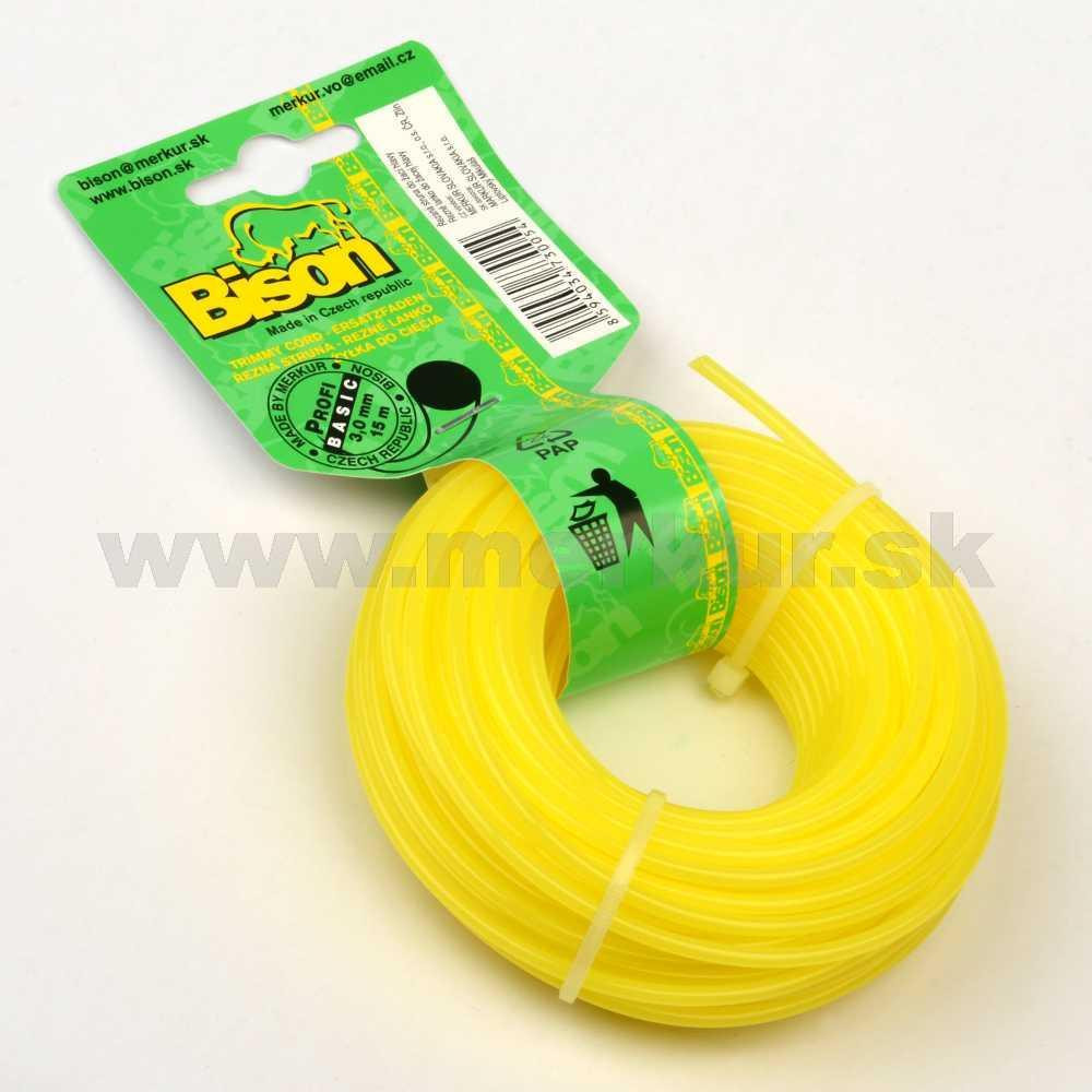 BISON BASIC PROFI je kvalitné žacie lanko kruhového prierezu žltej farby vyrobené zo zušľachteného kopolyamidu 6/9, materiálu s vysokou trvanlivosťou prevyšujúcou predávané silónové lanká a štandardné nylonové lanká na našom trhu.