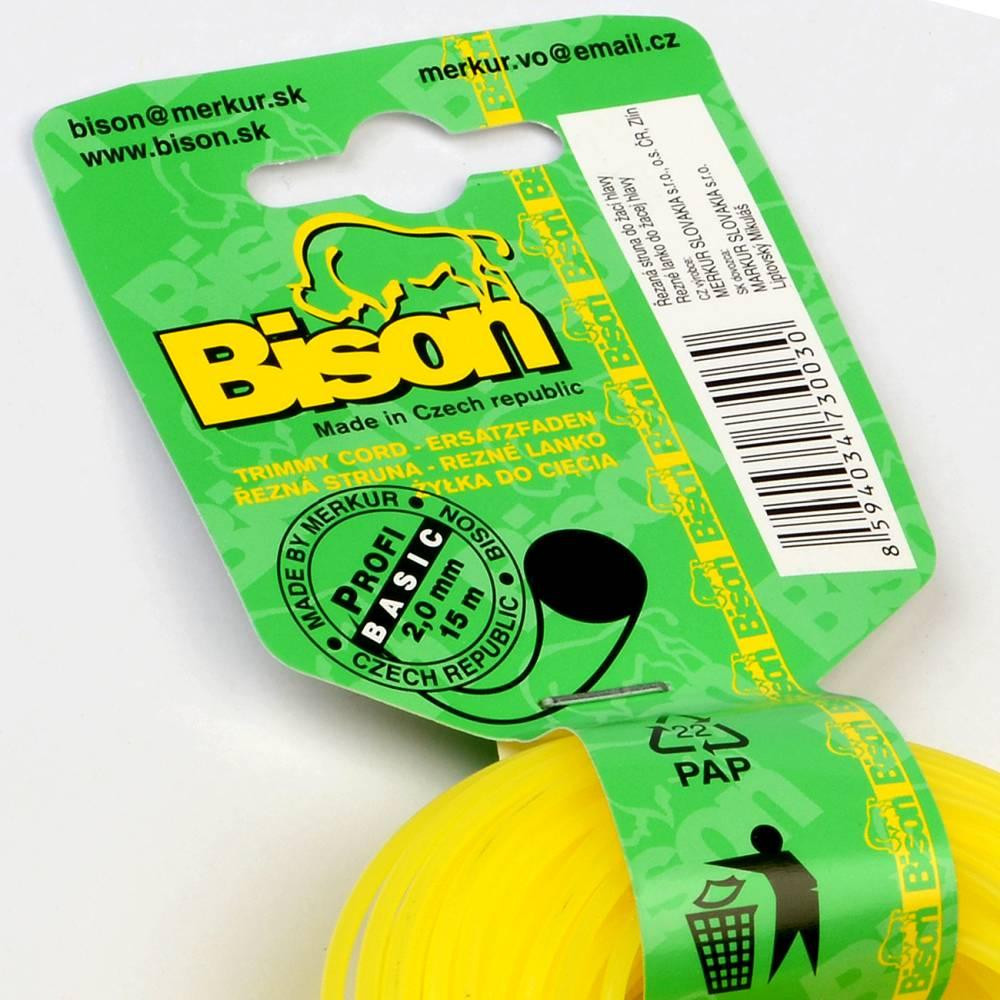 BISON BASIC PROFI je kvalitné žacie lanko kruhového prierezu žltej farby vyrobené zo zušľachteného kopolyamidu 6/9, materiálu s vysokou trvanlivosťou prevyšujúcou predávané silónové lanká a štandardné nylonové lanká na našom trhu.