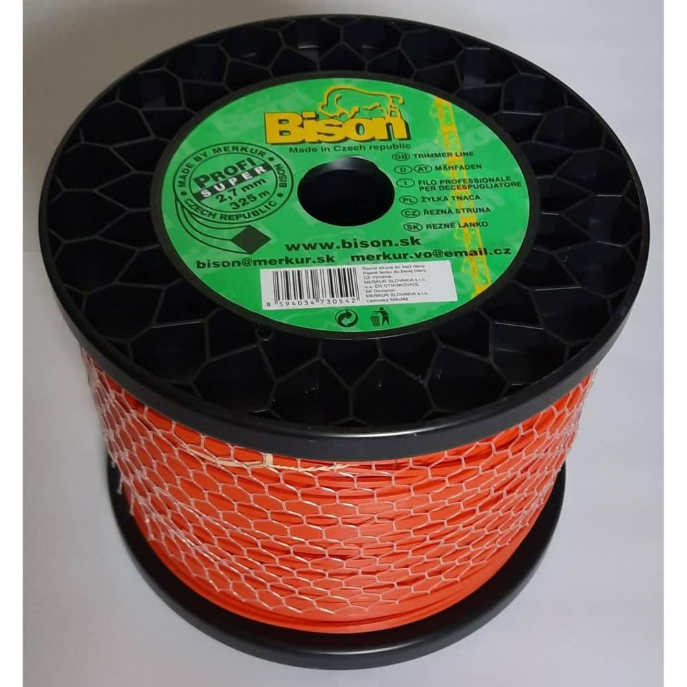 BISON SUPER PROFI je vysokokvalitné profesionálne žacie lanko štvorcového prierezu oranžovej farby vyrobené zo zušľachteného kopolyamidu 6/12, materiálu s trvanlivosťou vysoko prevyšujúcou predávané silónové a štandardné nylonové lanká na našom trhu.