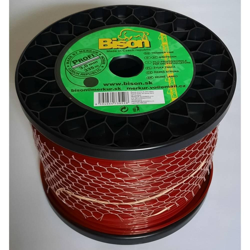 BISON PROFI je vysokokvalitné profesionálne žacie lanko kruhového prierezu červenej farby vyrobené zo zušľachteného kopolyamidu 6/12, materiálu s trvanlivosťou vysoko prevyšujúcou predávané silónové a štandardné nylonové lanká na našom trhu.