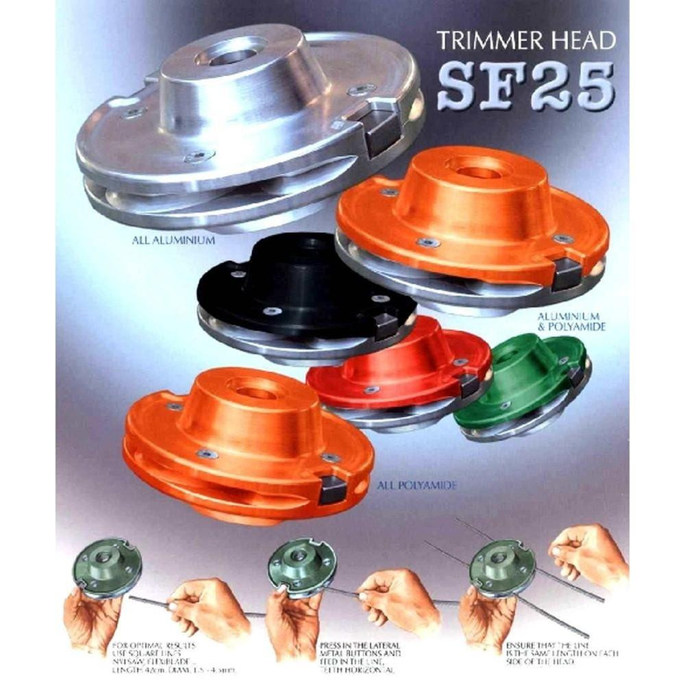 Profesionálna žacia hlava SF-25 je 4-lanková hlava bez cievky na predrezané kusy rôznych hrúbok a typov laniek laniek vrátane špeciálnych zubatých a iných.