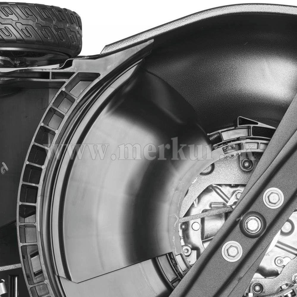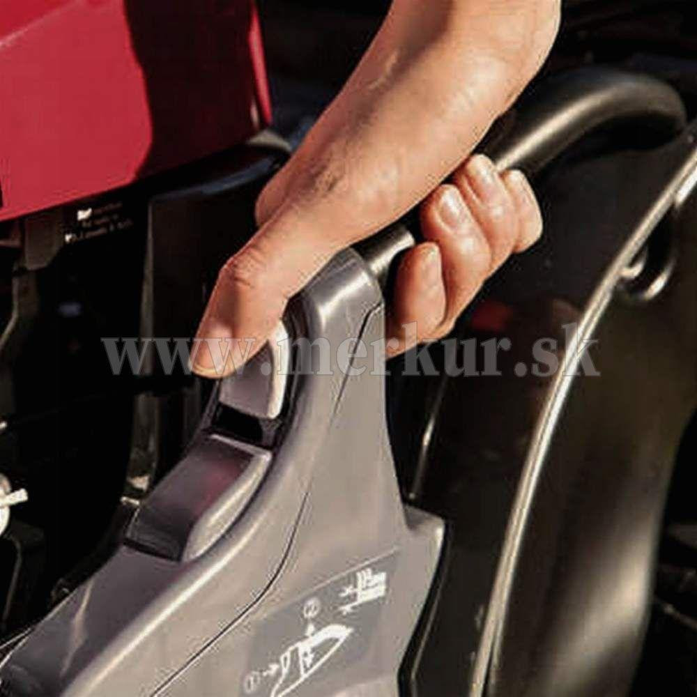 Kosačka je vybavená bezpečnostnou brzdou rotácie kosacích nožov, ktorá zaistí okamžité zastavenie rotácie kosacích nožov pri vypnutí motora. Motor je automaticky nastavený na pracovné otáčky bez ďalších ovládacích páčok motora. Značne sa tak zjednodušuje práca s kosačkou.
