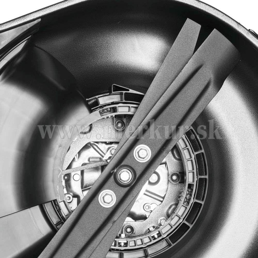 Samozrejmosťou je u tejto kosačky použitie dvoch samostatných nožov v podobe kosiaceho noža s lopatkami vyhadzovania trávy do zberného koša a mulčovacieho noža, ktorý nadrví trávu na menšie čiastočky. Nože sú umiestnené nad sebou a v čiastočnom posunutí za sebou. Vyššie umiestnený nôž kosí ako prvý a hneď za ním nižšie umiestnený čo má za následok, že tráva je už pri počiatočnom odkosení rozseknutá na dva menšie kusy. Následne kým sa dostane do koša je vrchným mulčovacím nožom ešte niekoľko krát rozseknutá. Výsledkom je že sa do koša môže zmestiť až o 25% viac trávy ako pri kosení jedným nožom v závislosti od výšky a druhu koseného porastu. Takže menej prerušení na vysýpanie koša a tým rýchlejšie kosenie.