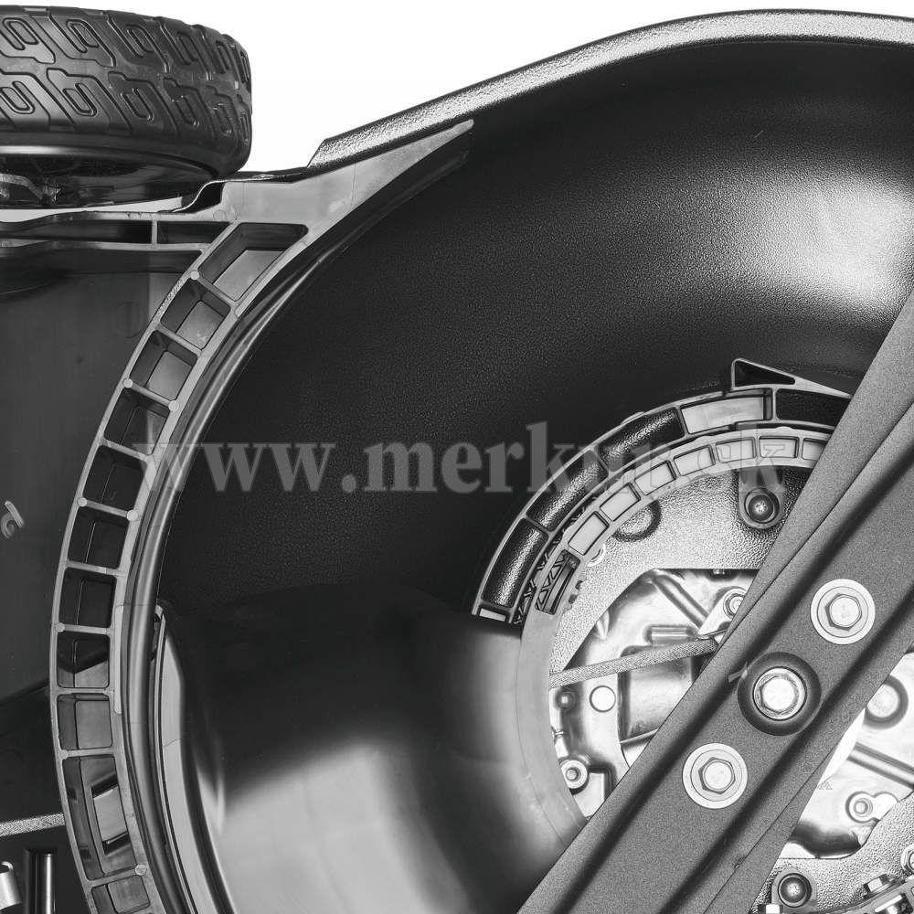Robustná a pevná konštrukcia podvozku pohlcuje vibrácie, ktoré sa ďalej neprenášajú na ovládacie madlo kosačky. Tento model kosačky je základným modelom luxusného radu kosačiek HRX, ktorý patrí k najtichším a najlepšie vybaveným motorovým kosačkám na trhu vôbec.