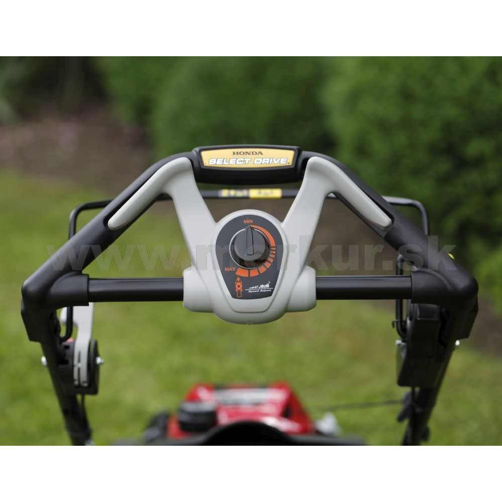 Vlastný pohon s možnosťou plynulej zmeny rýchlosti jazdy SELECT Drive® sa dokonale prispôsobí pohybovým schopnostiam každého a výrazne tak znižuje námahu pri práci. Výškovo nastaviteľná ovládacia rukoväť sa prispôsobí výške postavy. Zmenu výšky kosenia vykonáte ľahko pomocou jedinej páky s aretáciou v 7 polohách. Kompaktné rozmery a vyváženosť stroja mimoriadne umožňujú vynikajúcu ovládateľnosť kosačky v členitom teréne.