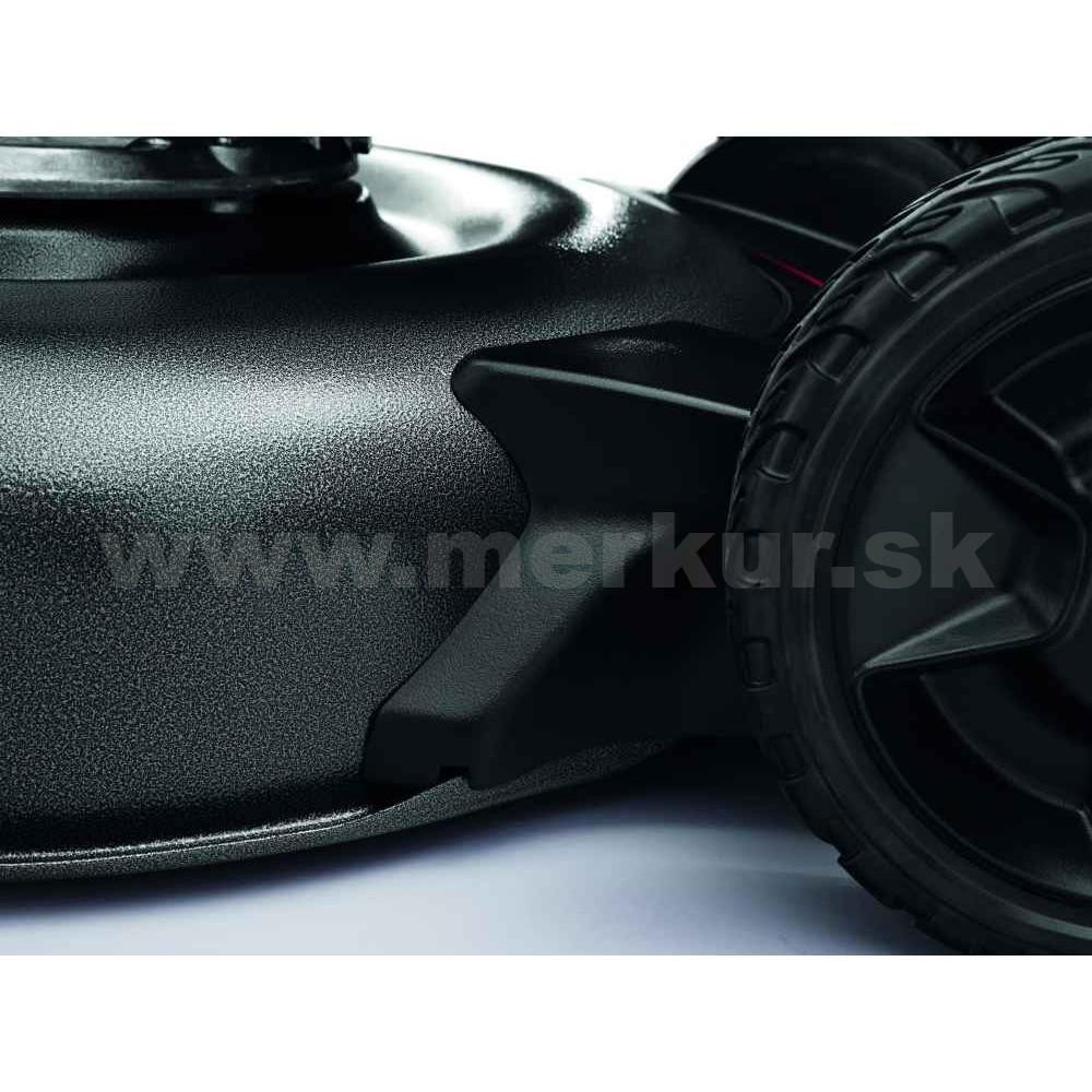 Robustná a pevná konštrukcia podvozku spoľahlivo znesie pôsobenie ohromného výkonu motora na rotujúce kosiace nože a navyše v maximálnej možnej miere pohlcuje vibrácie, ktoré sa ďalej neprenášajú na ovládacie madlo kosačky. Práca je potom príjemnejšia.
