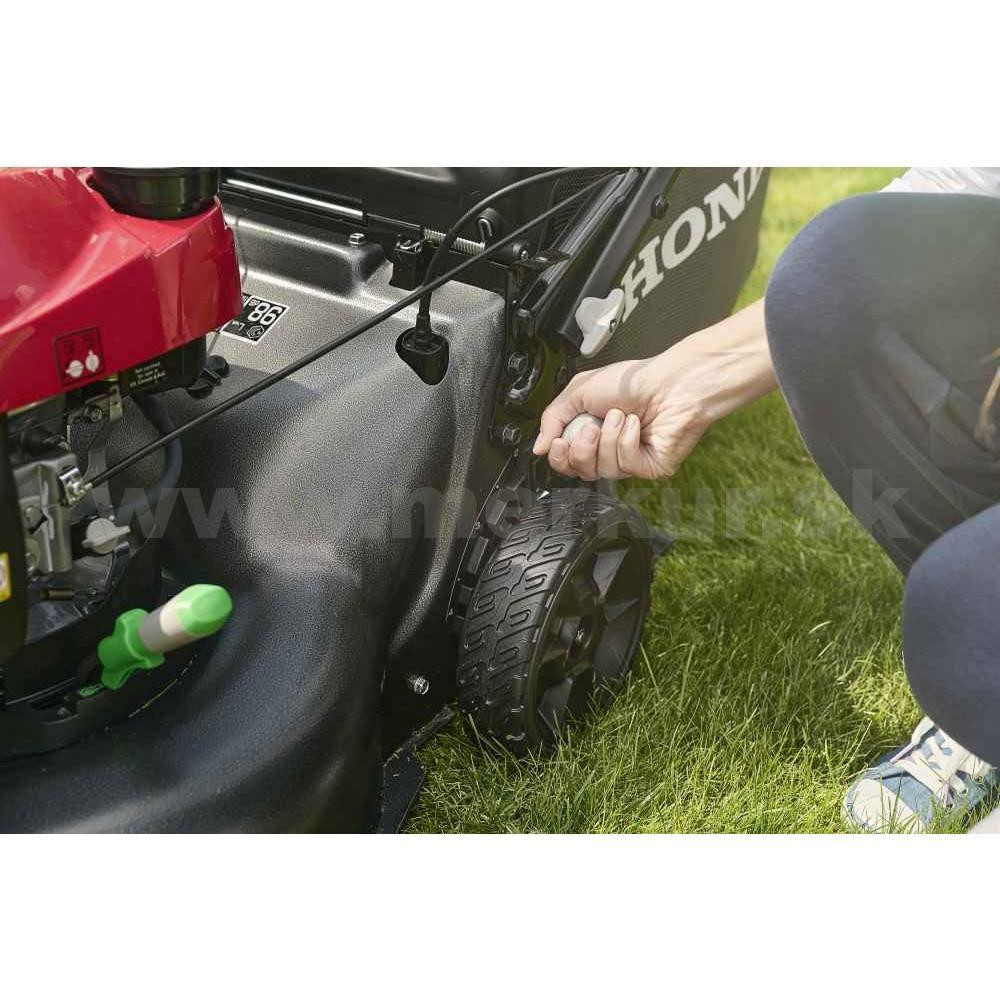 Táto Honda je určená pre užívateľov, ktorí potrebujú kosiť trávu ako na rovnej, tak aj čiastočne svahovitej a členitej trávnatej ploche o veľkosti cca do 1500 m2 a pritom si užívať komfort.